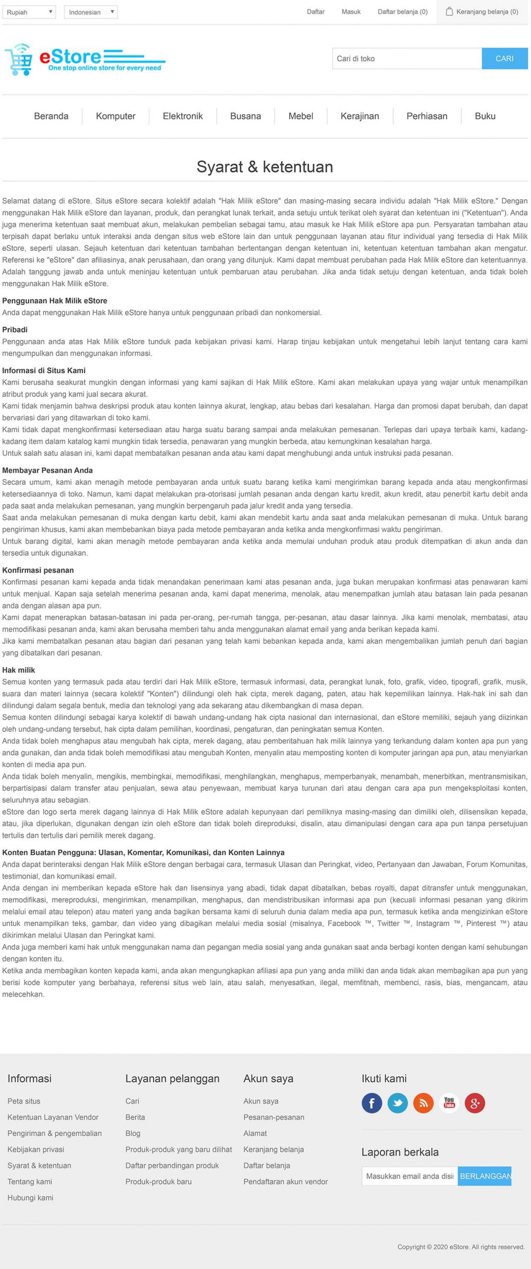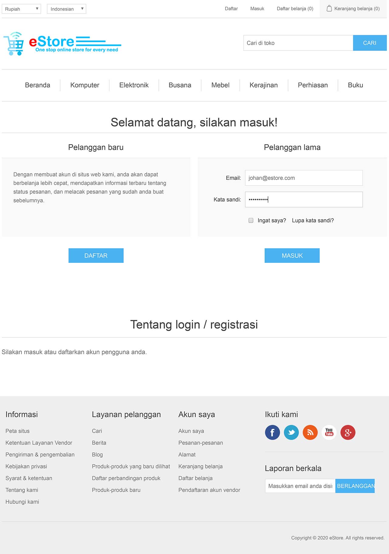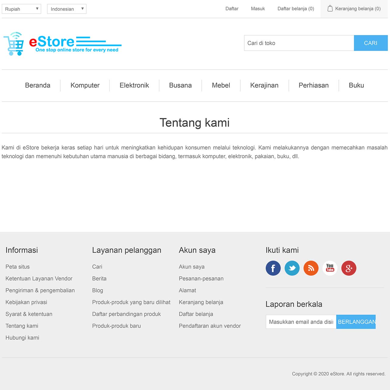 eStore adalah Aplikasi Web / Website (Web Application Software) jenis Sistem Manajemen Toko Online (eCommerce). Aplikasi ini umumnya digunakan oleh perusahaan atau organisasi untuk melakukan penjualan barang atau jasa secara online. Dalam contoh, aplikasi ini diimplementasi untuk memasarkan berbagai jenis produk-produk perusahaan retail secara online melalui jaringan internet.