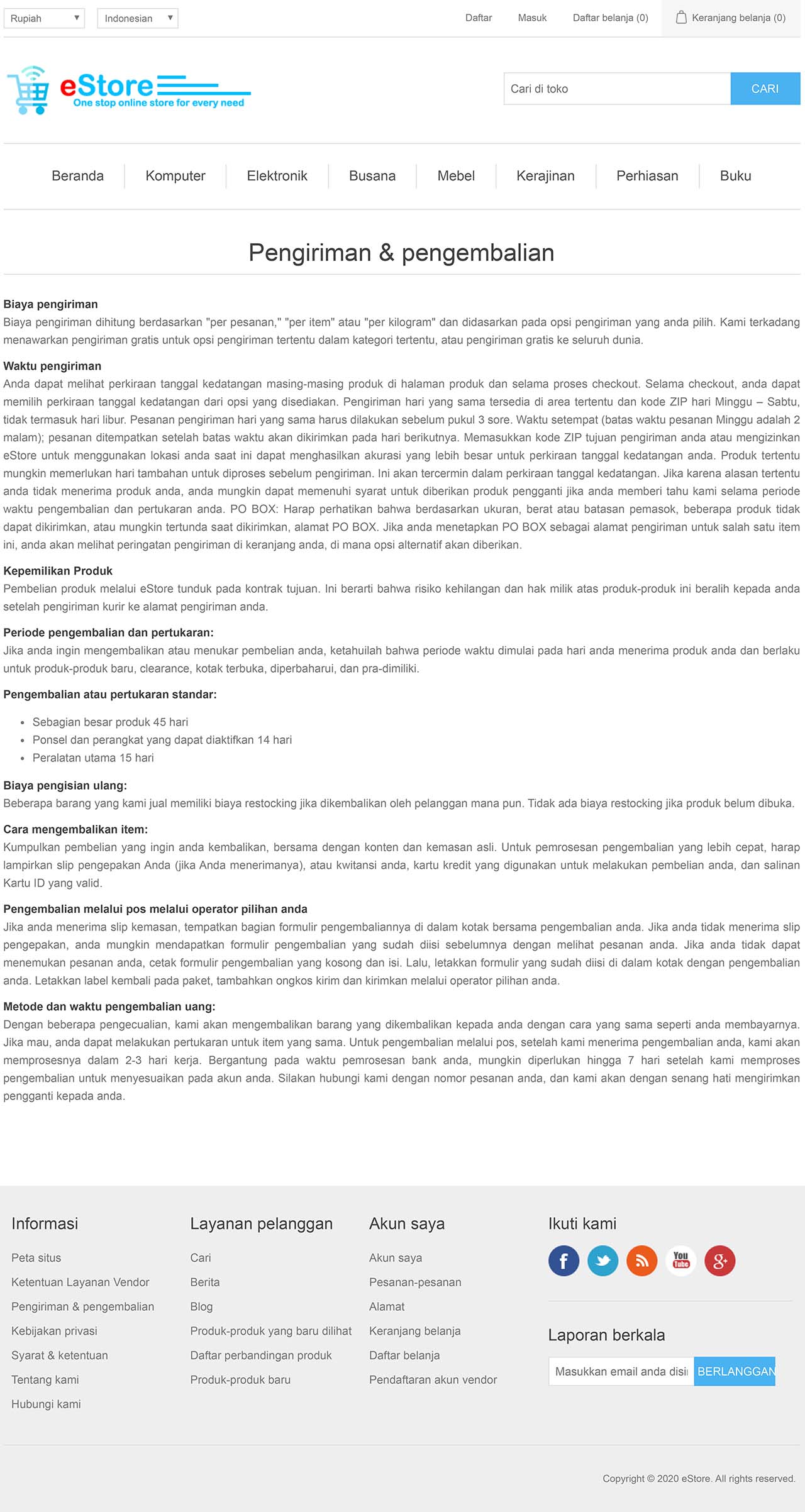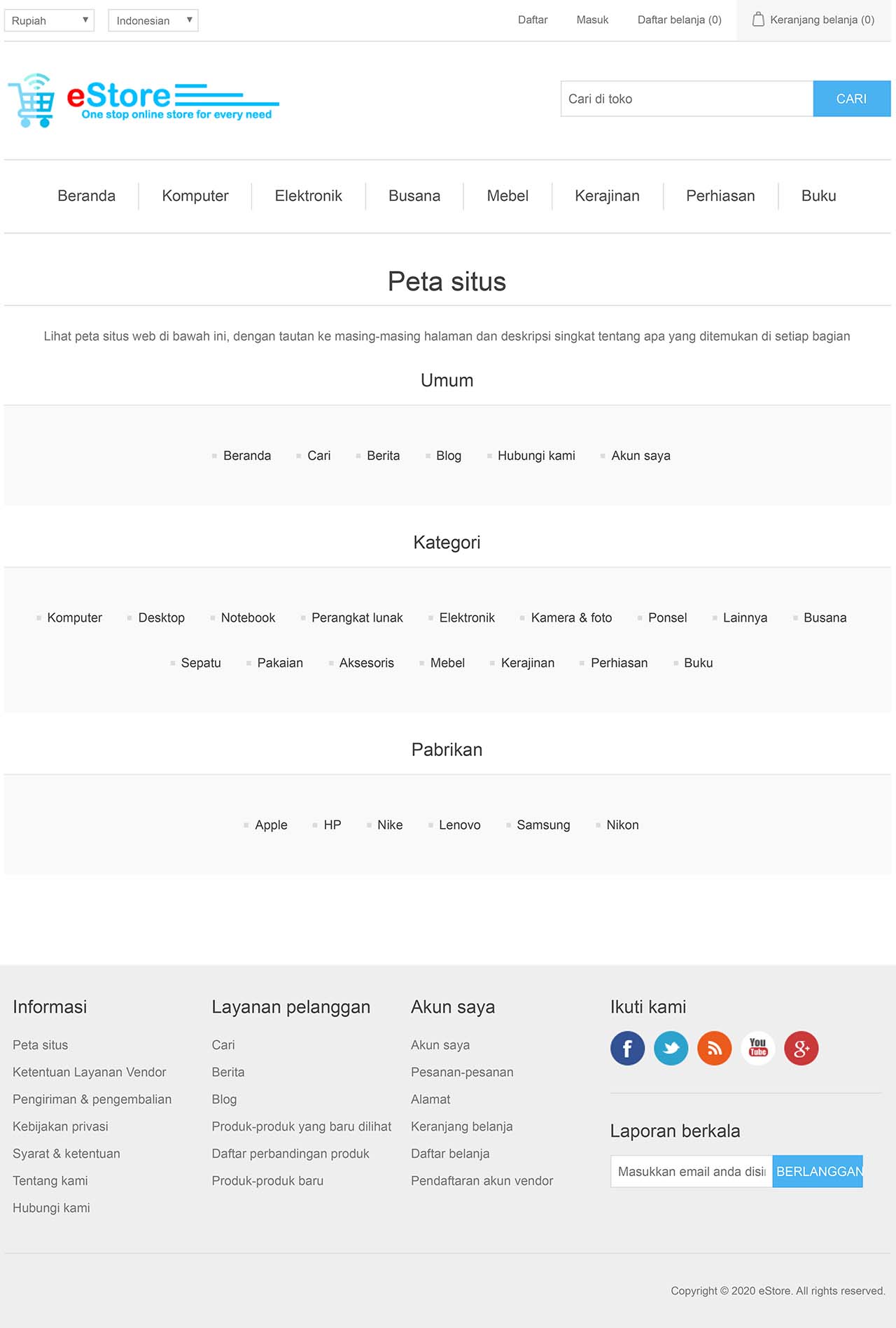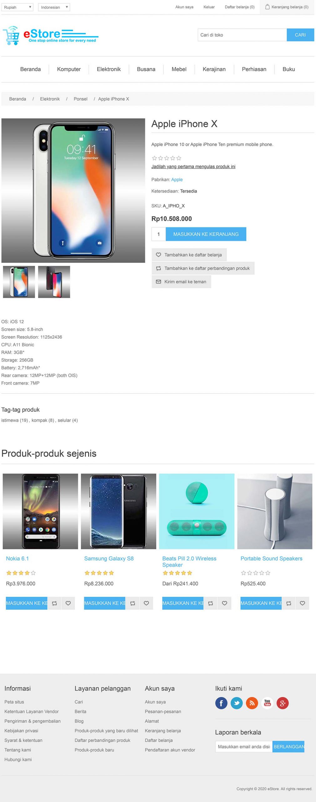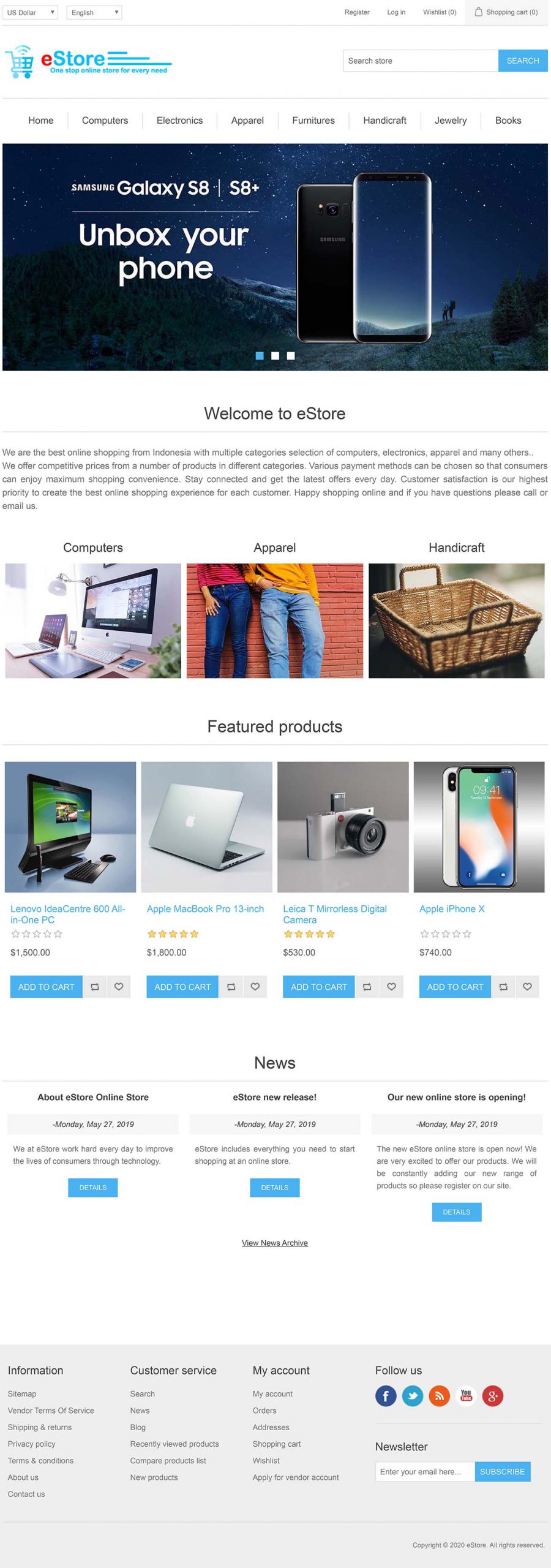 eStore adalah Aplikasi Web / Website (Web Application Software) jenis Sistem Manajemen Toko Online (eCommerce). Aplikasi ini umumnya digunakan oleh perusahaan atau organisasi untuk melakukan penjualan barang atau jasa secara online. Dalam contoh, aplikasi ini diimplementasi untuk memasarkan berbagai jenis produk-produk perusahaan retail secara online melalui jaringan internet.