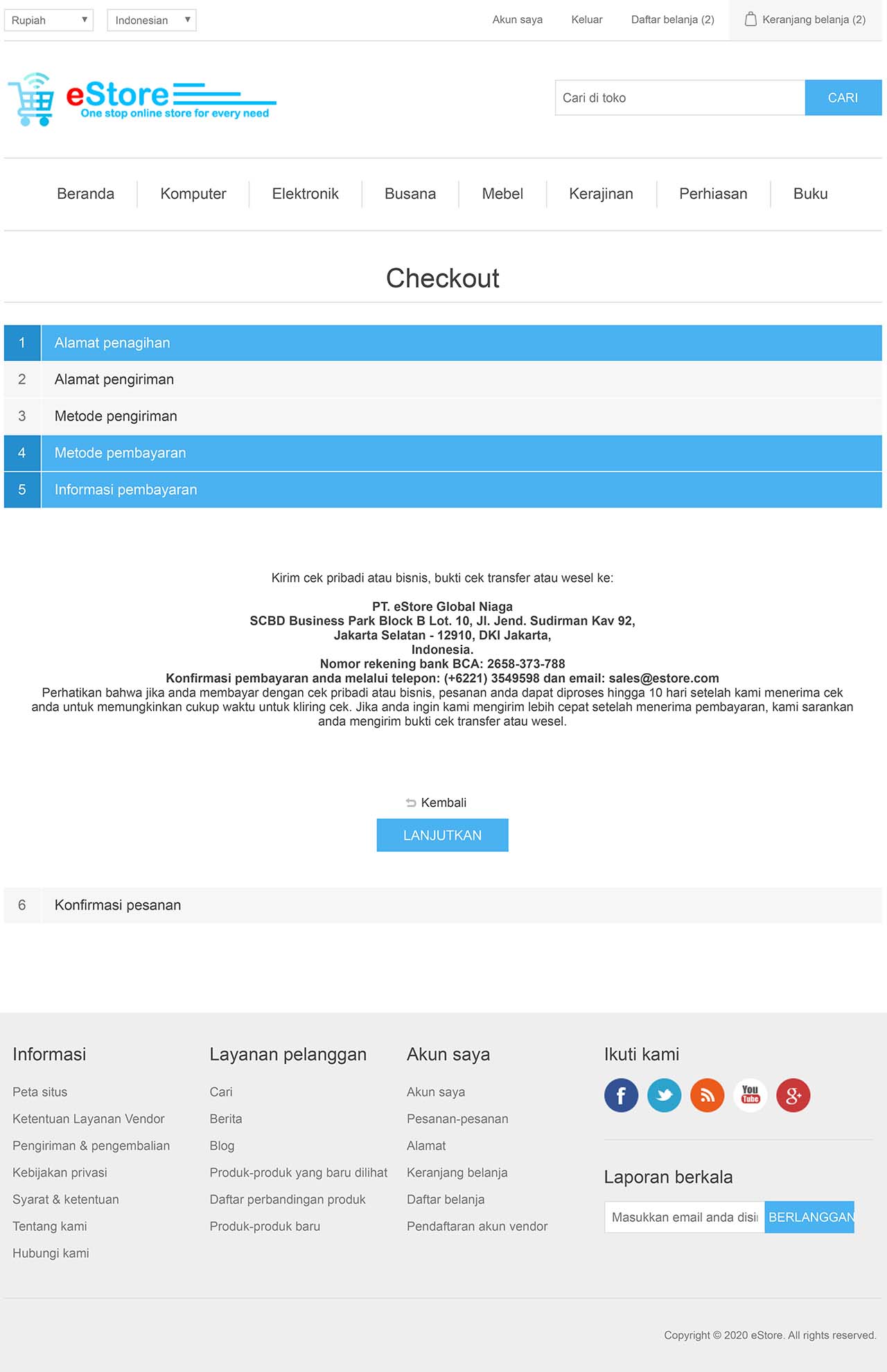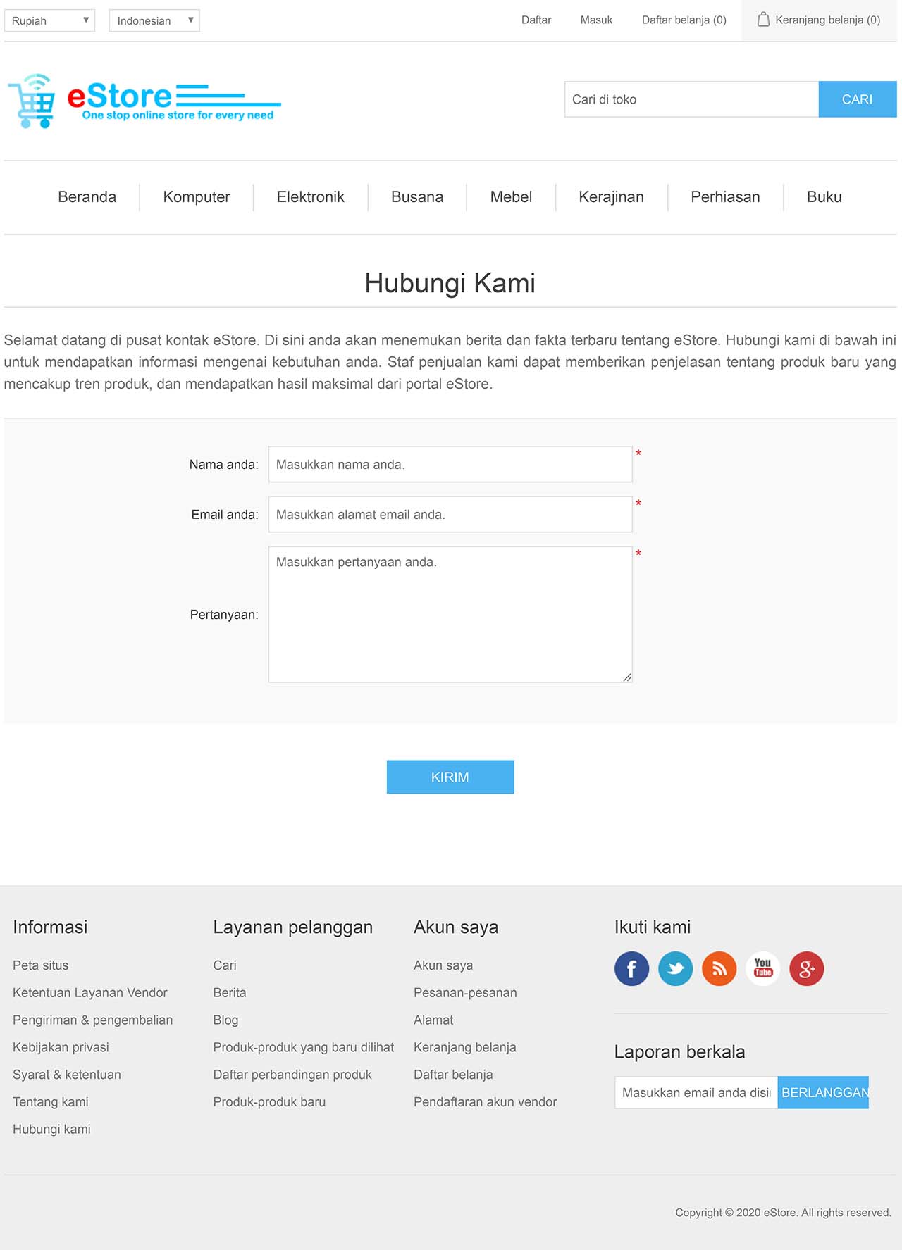Pada setiap perubahan status pemesanan (processing, pending, complete, cancelled), sistem secara otomatis akan mengirimkan pesan email pemberitahuan status pemesanan kepada operator situs dan kepada pelanggan yang melakukan pemesanan. - Formulir kontak.