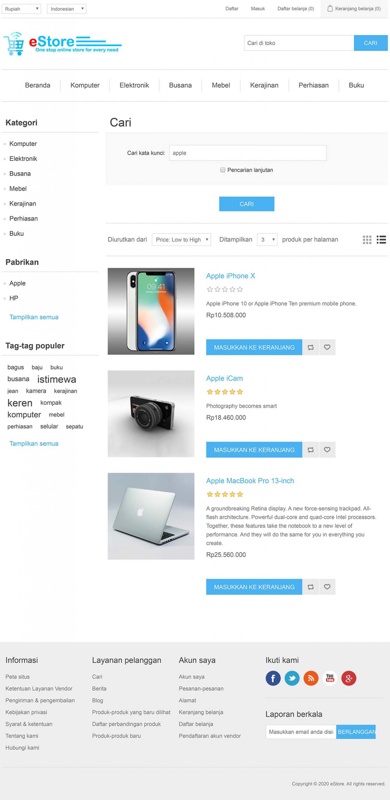 Memudahkan pengunjung situs untuk melakukan pencarian produk berdasarkan kata kunci, kategori, pabrikan dan kisaran harga. - Manajemen belanja.